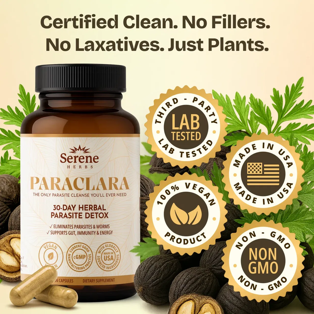 Paraclara™ is a powerful herbal formula that helps eliminate parasites and reset your gut health. Built on African and Caribbean healing traditions, it combines proven ingredients like Black Walnut Hull, Wormwood, Neem Leaf, and Clove to create an environment where parasites can't survive. If you're dealing with bloating, fatigue, or digestive issues that won't go away, Paraclara™ is the deep cleanse your body needs.