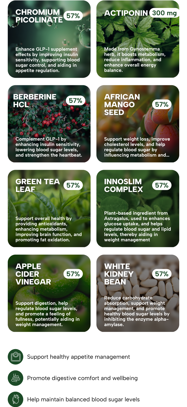 GPL-1 offers an all-in-one solution for your metabolic health needs. Instead of cluttering your cupboard with appetite suppressants or weight-loss mixes, you can get proven results in just two capsules a day.