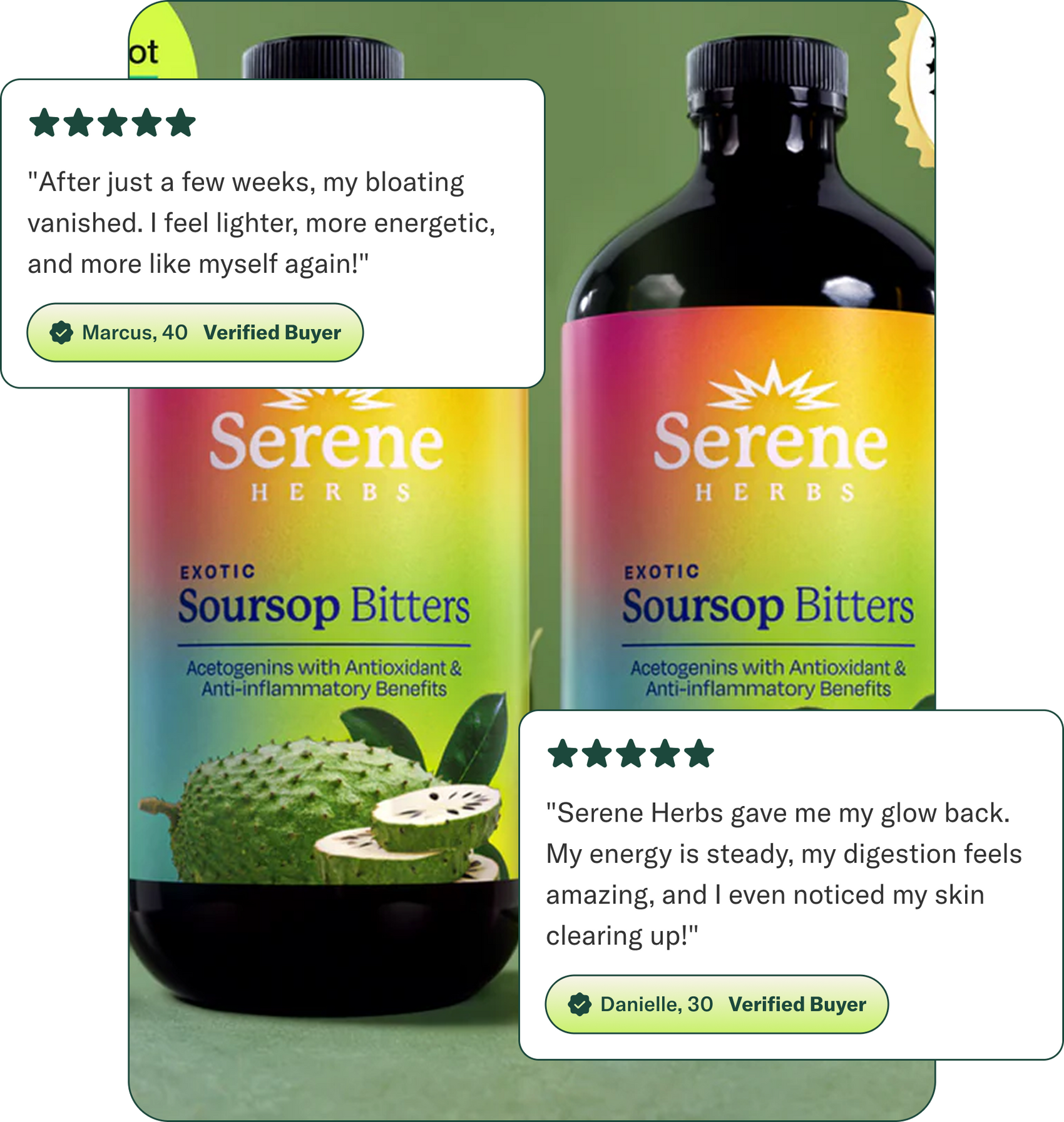 Detox, energize, and rebalance your body with the powerful strategy of Soursop and Black Seed Bitters. This 2-step herbal cleanse reduces bloating, boosts immunity, and supports hormones--so you can feel lighter, clearer and fully restored.