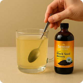 Take one tablespoon twice daily of Soursop Bitters and Black Seed Bitters, preferably after meals.